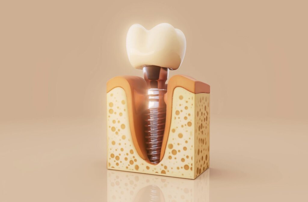 A dental implant replaces your missing tooth from the root up. The dentist places a titanium screw directly into your jawbone where your natural tooth root used to be. This titanium post acts as your new tooth foundation.